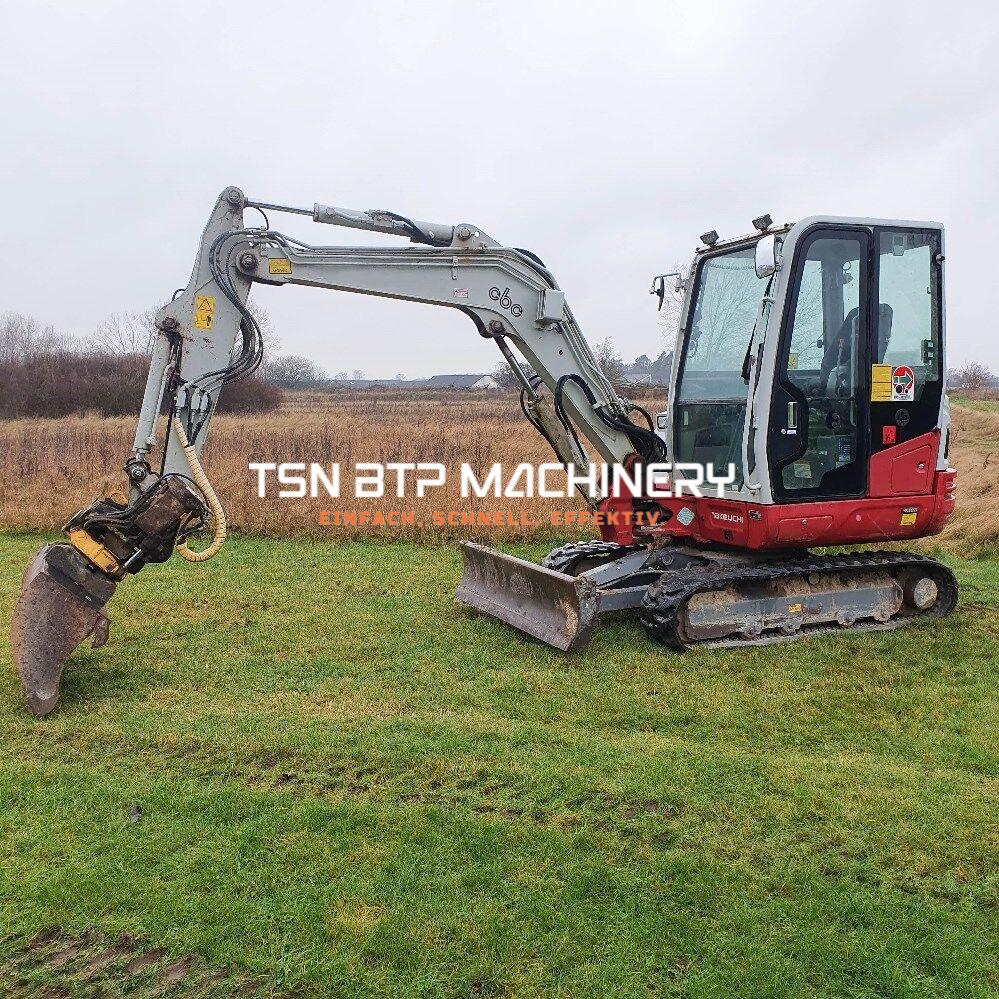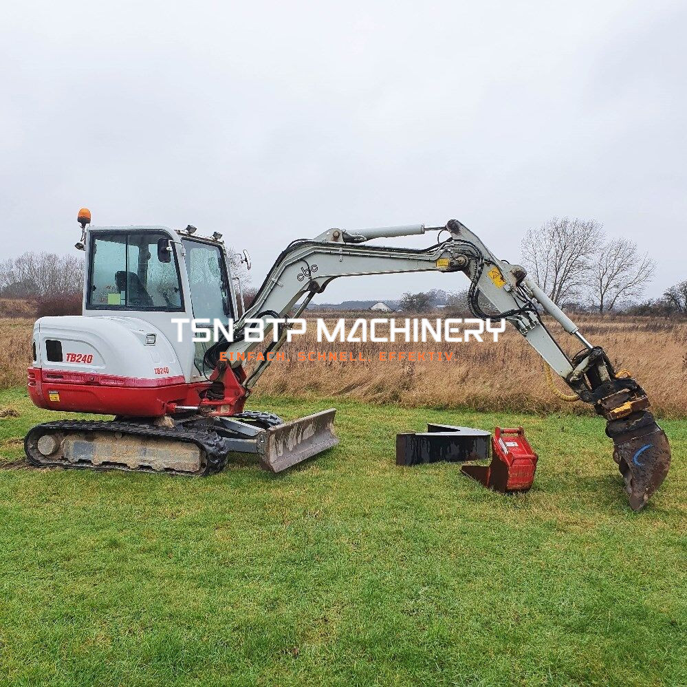 Minibagger TAKEUCHI Modell: TB240 Jahr: 2016 Arbeitsstunden: 1022 H Gewicht: 3890 kg Motor: Yanmar 4TNV88C Motorleistung: 26.7 kW Drei (03) Schaufeln Zusätzliche Hydraulikleitung Transportlänge 2.95 m \rd Transportbreite 1.74 m rd Transporthöhe 2.50 m rd Gummiraupenbreite 350 mm rd neigbarer Schnellwechsler rd robuste Maschine rd Lieferung in Metropolen und Europa gegen Aufpreis.
